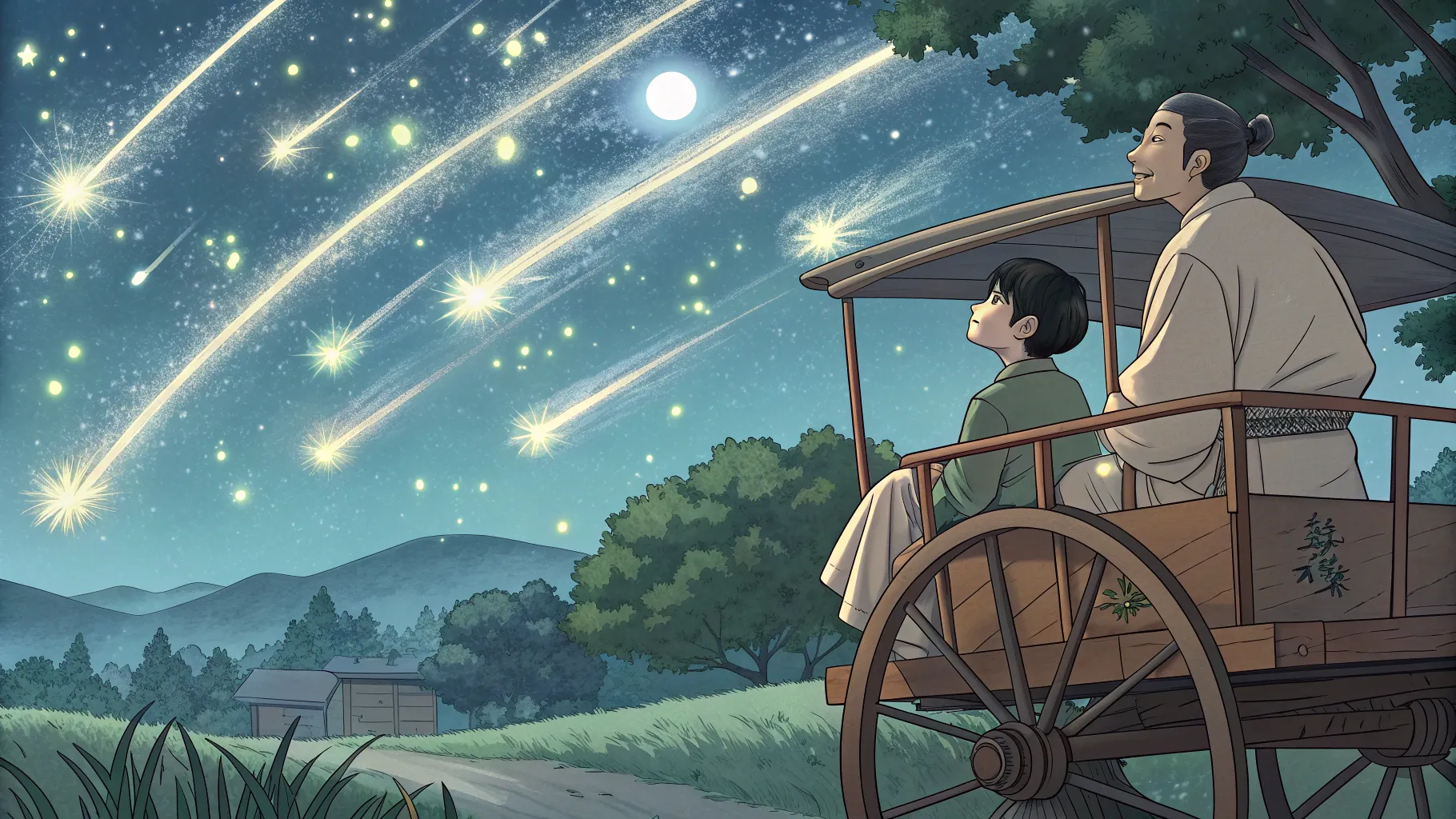 人生をやり直したいと願う主人公の前に、一夜の奇跡のように現れては消えていく不思議なワゴンカーを「流星」にたとえています。